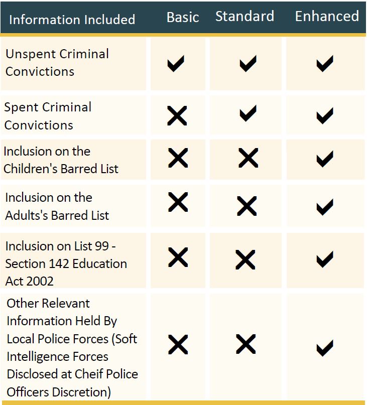 We think it’s a great concept and is designed to help and support families during the most harrowing of times, although there are some concerns. For example, an enhanced DBS checks will only be required on those within the household of the host family, if Ukraine family includes children or vulnerable adults. However, if the family seeking refuge doesn’t have children or care for a vulnerable adult then only a basic level checks is required. A basic level check reveals a significantly less amount of information compared to the enhanced. As the image below illustrates, a basic DBS check will only highlight unspent criminal convictions.